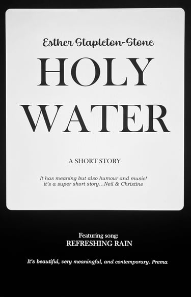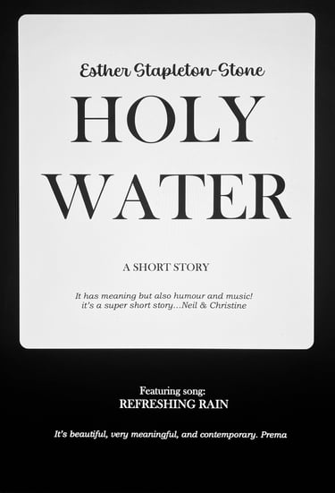 Four pilgrims arrive at the church of the Holy Spirit hoping to find peace and a divine encounter. It's an emotional journey where the reader gets immersed in the pilgrims' life stories. The drama unfolds with humorous twists...Featured in HOLY WATER is the song ‘Refreshing Rain' written by Esther, which can be streamed from online stores.