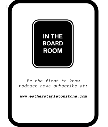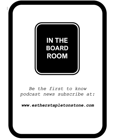 Every month we share an interview and select a new subscriber to receive a free copy of Esther's book. 'The Boardroom'
