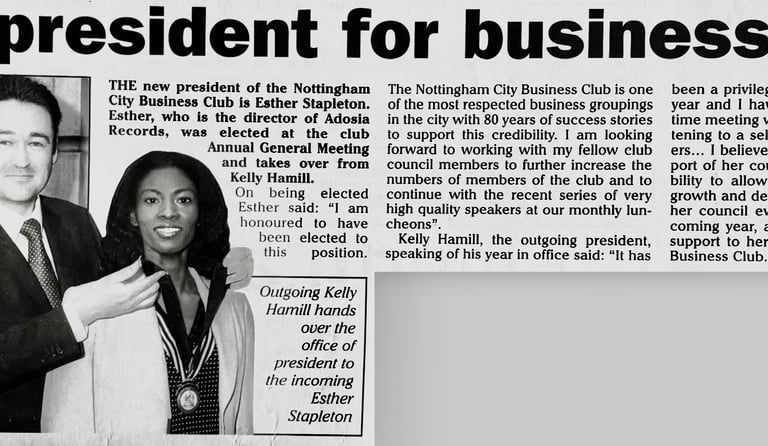 Available in the following formats: ebook and paperback. Esther shares details of her time as President of the Nottingham City Business Club in her book 'The Boardroom'.
